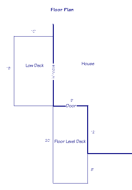 I drew up this floor plan of your decks to be sure I understand what you are going to do. Let's start with getting this correct first:
